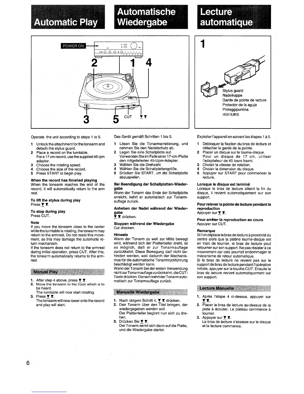 nicht zurTonarmauflage zuruckkehrt, die CUT-