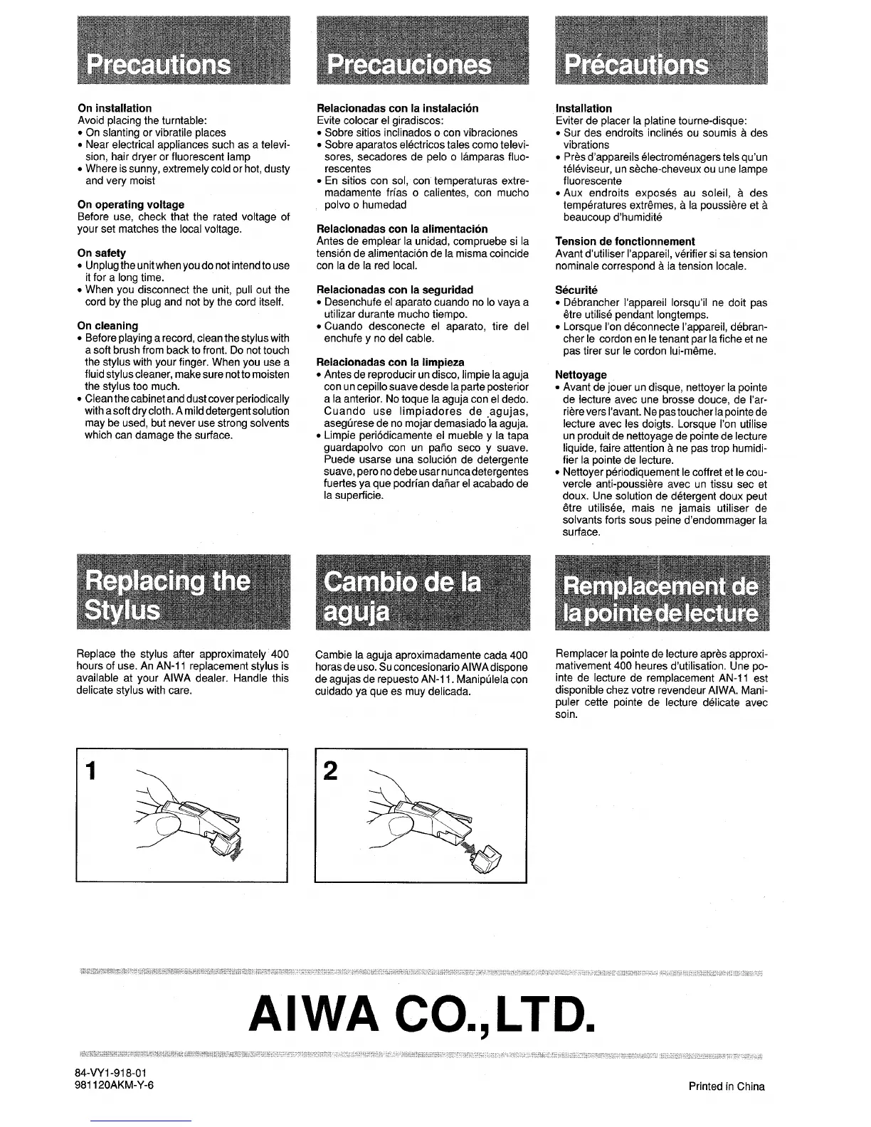 available at your AIWA dealer. Handle this