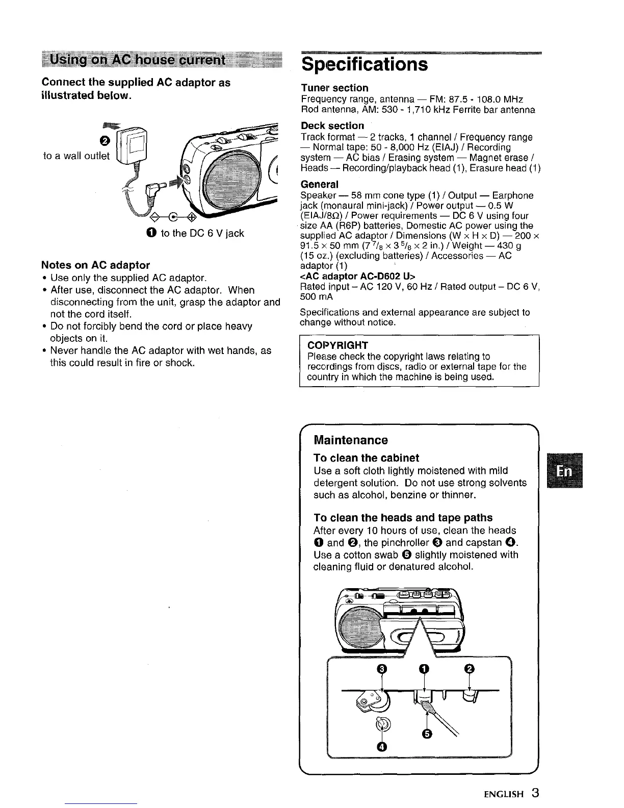 Speaker — 58 mm cone type (1)/ Output — Earphone