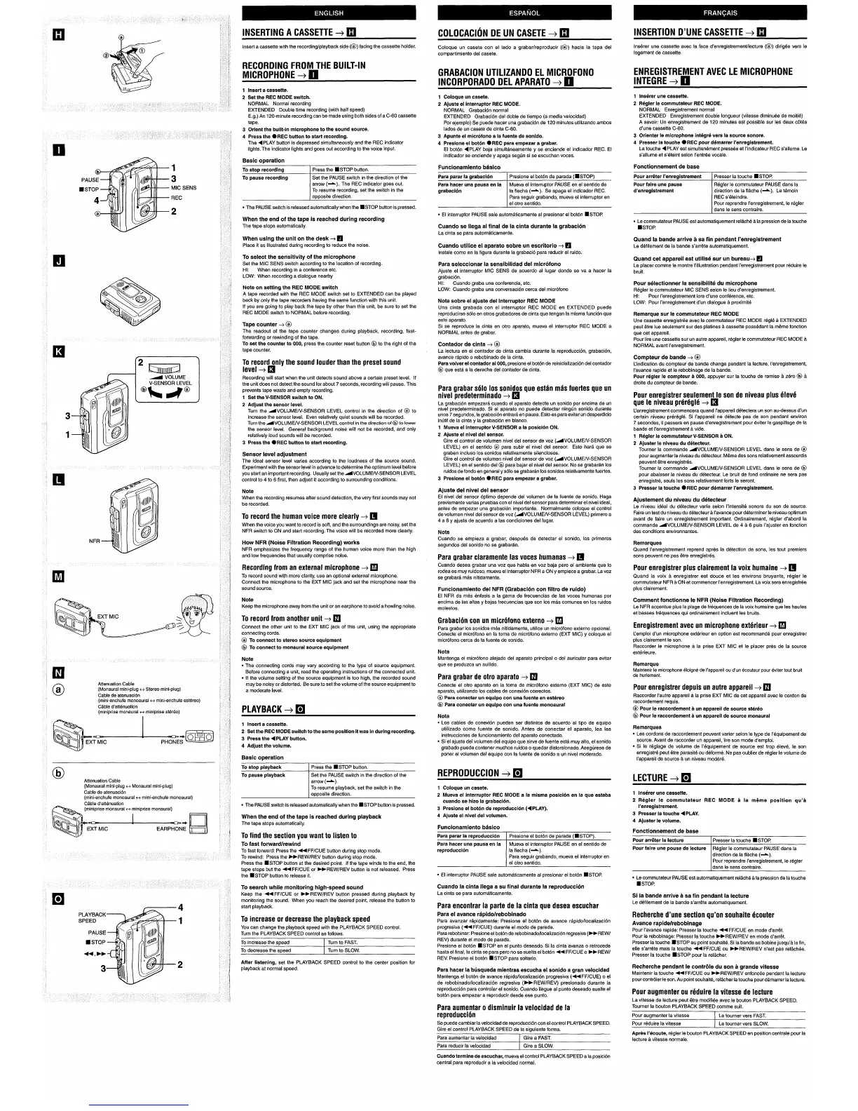 Aprbs I’ecoute, r~gler Iebouton PLAYBACK SPEED en positioncentrale pourla