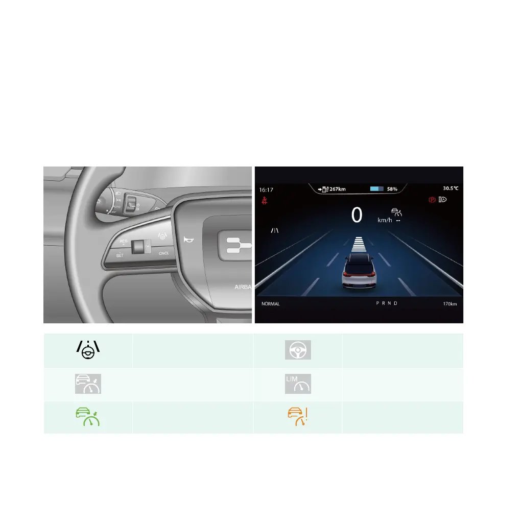The driver can activate ACC using the intelligent driving-related switches on the steering wheel: