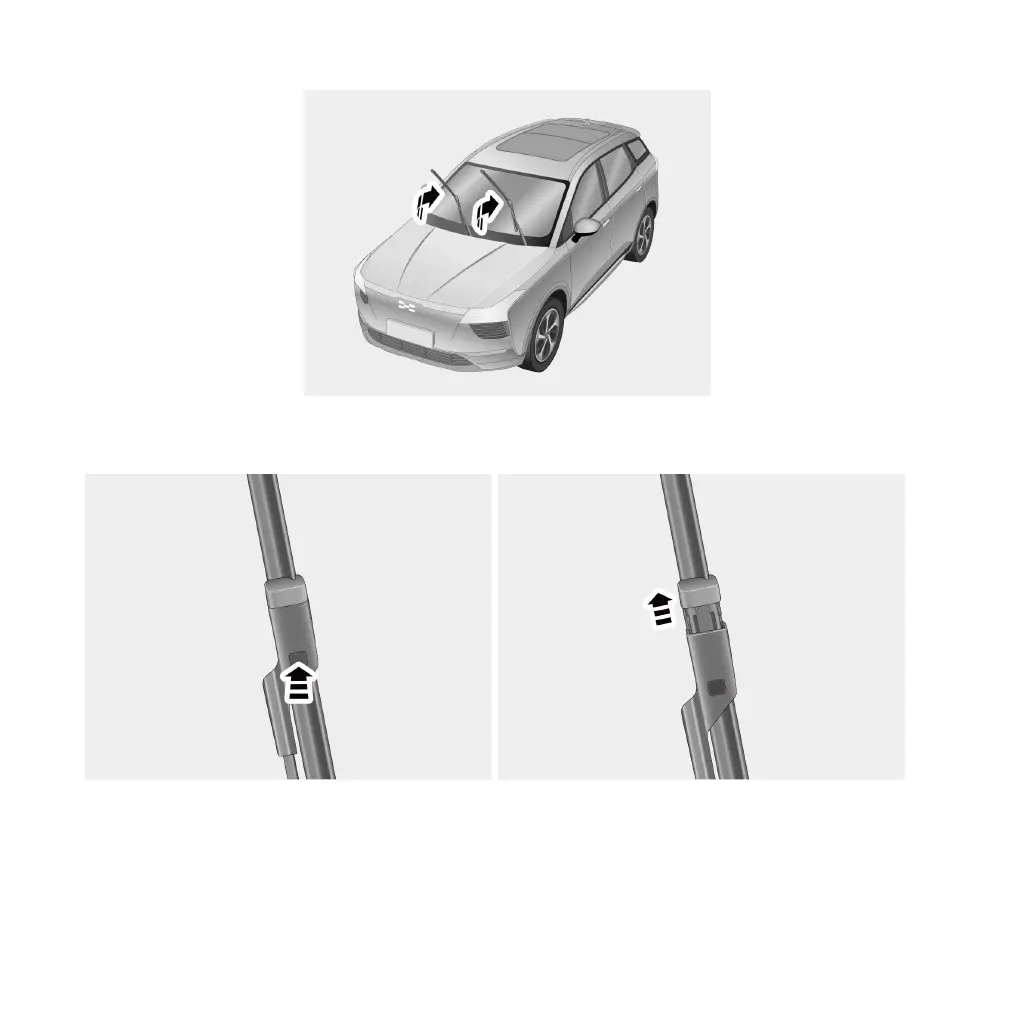 3. Press the button of the wiper arm, and at the same time lift the upper end of the wiper blade outward