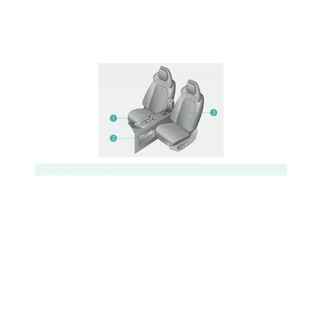 1. Central cup holder 2. Grid storage space 3. Central armrest box