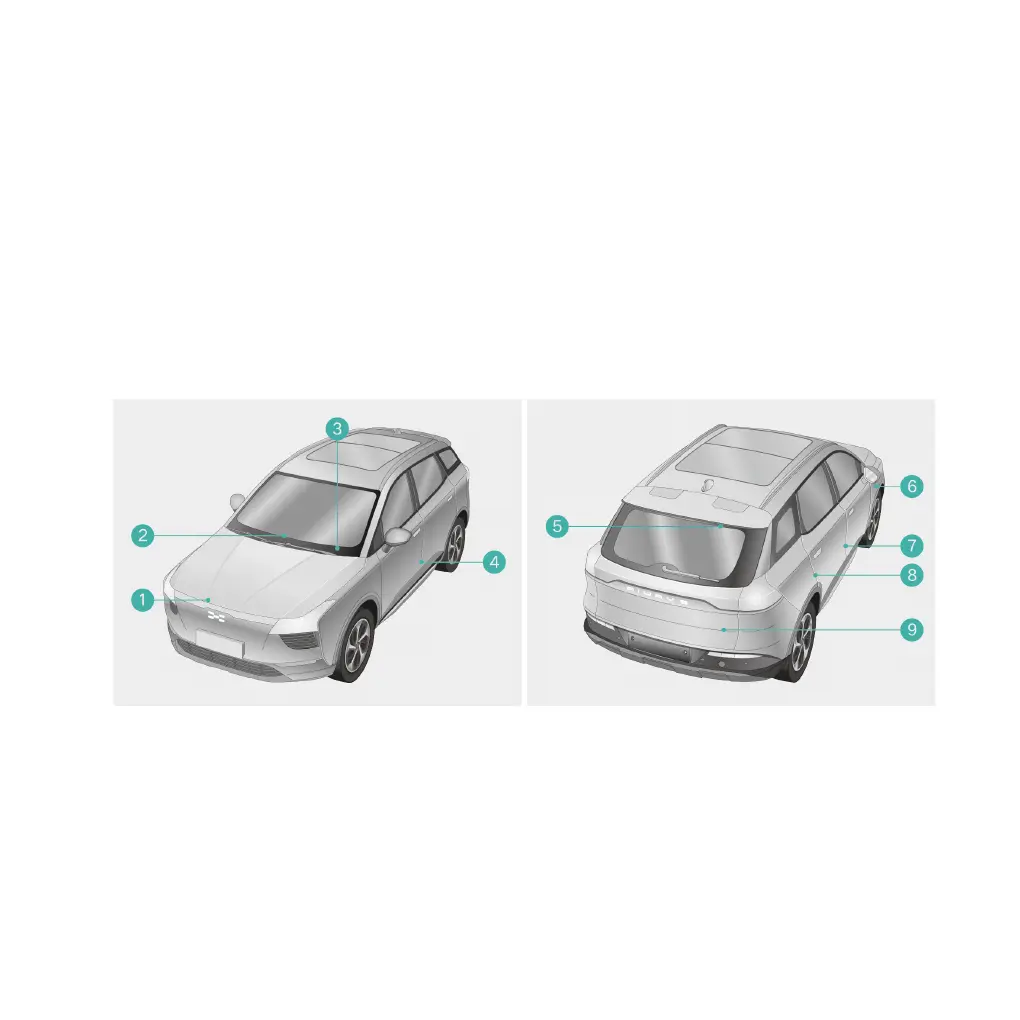 The vehicle identification numbers are located as follows: