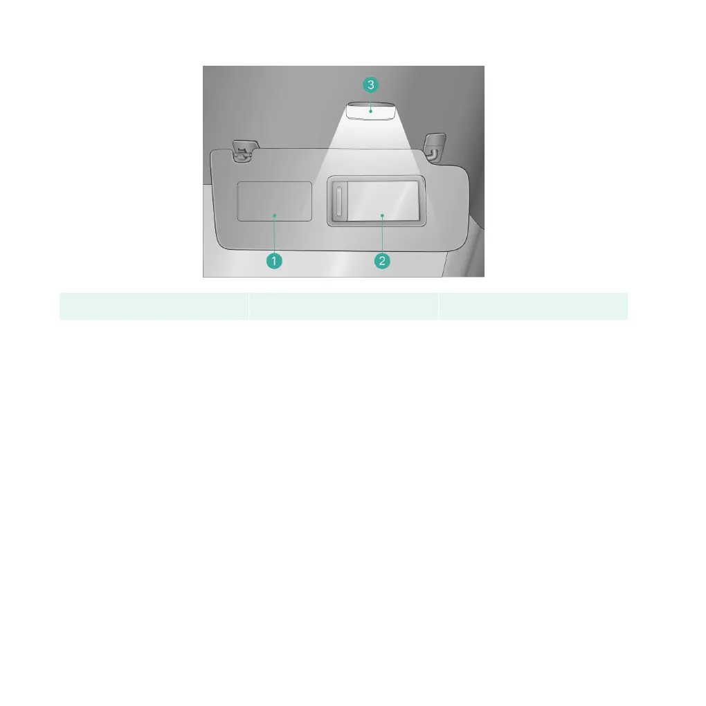 1. Sun visor 2. Vanity mirror 3. Lighting lamp