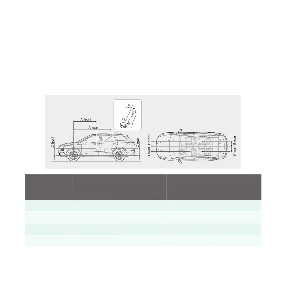 Adhere to the following details for front/rear seat positions and backrest angles: