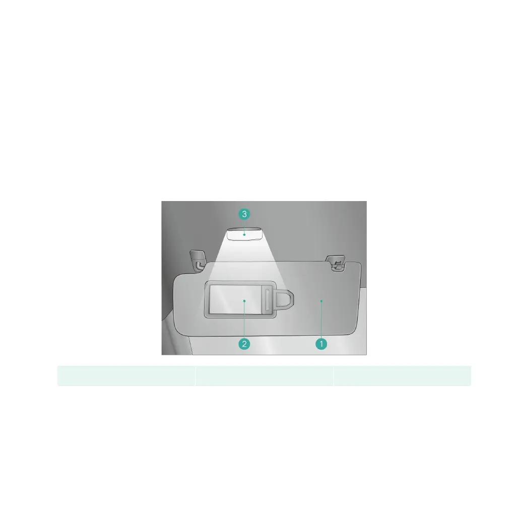 1. Sun visor 2. Vanity mirror 3. Lighting lamp