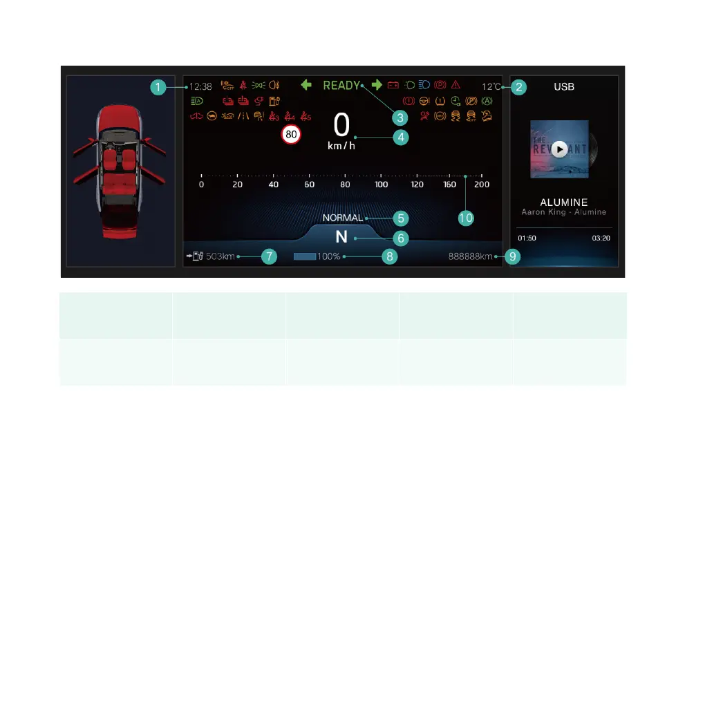 7. Driving mileage 8. Remaining range 9. Total mileage 10. Speedometer