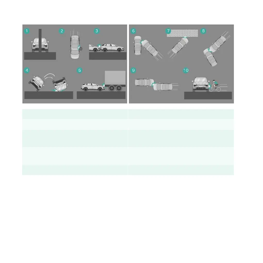 2. Side impact on pillars 7. Side impact of the front of the vehicle on a wall