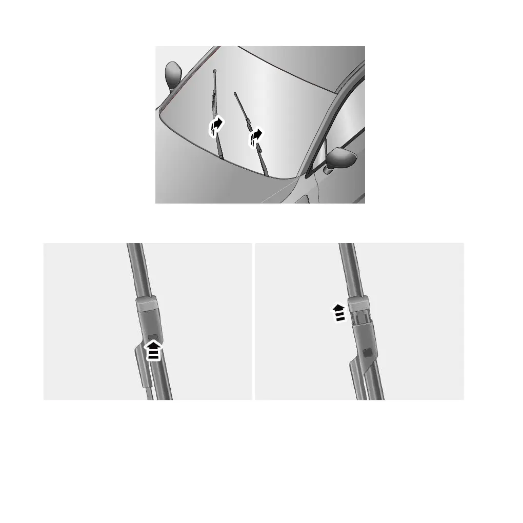 3. Press the button of the wiper arm, and at the same time lift the upper end of the wiper blade outward