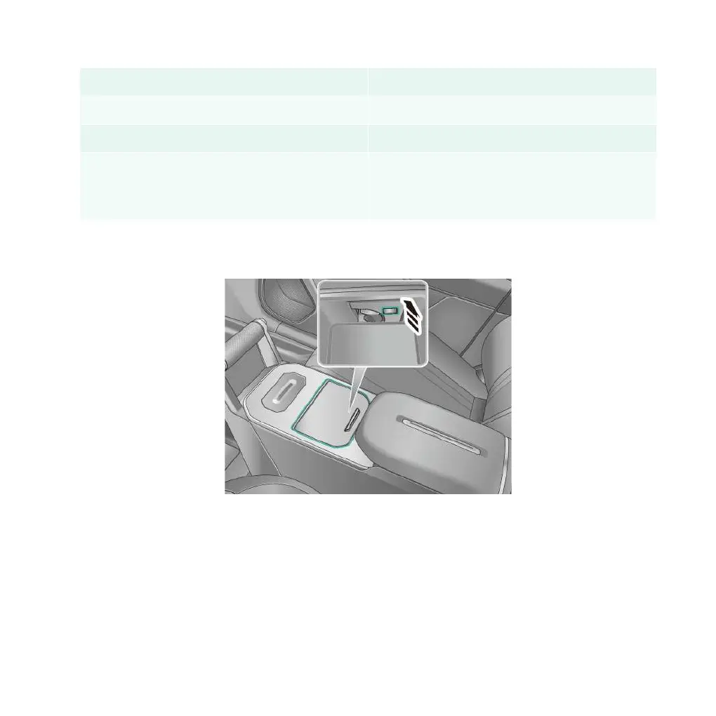 3. Wireless charging panel 4. Front passenger side door storage space