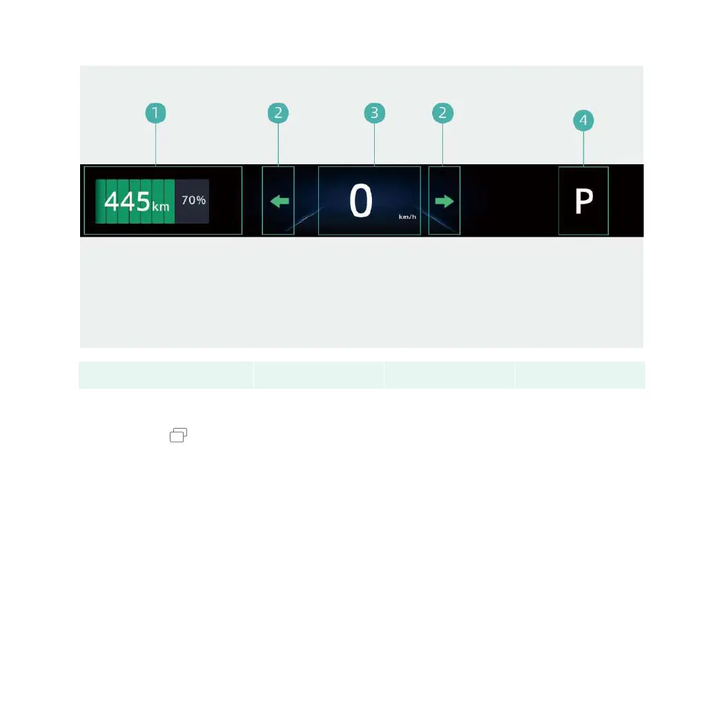 1. Battery/range display area 2. Turn signal lamp 3. Vehicle-speed 4. Gear display