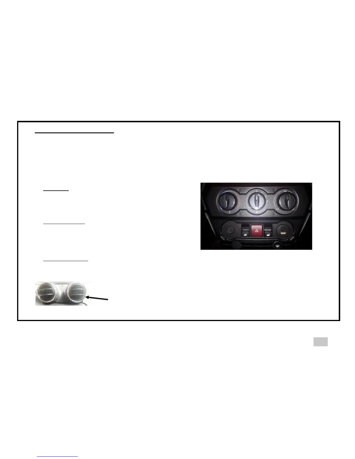 Turn to the left to increase the air flow directed to the feet. Turn to the right to direct the air flow upwards to de-mist the