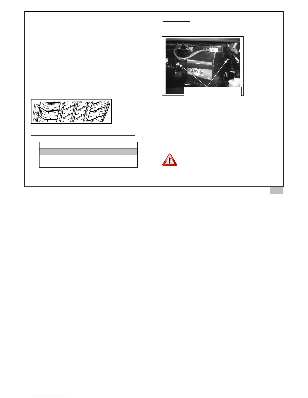 PRESSURE AND INFLATION OF TYRES (BAR)