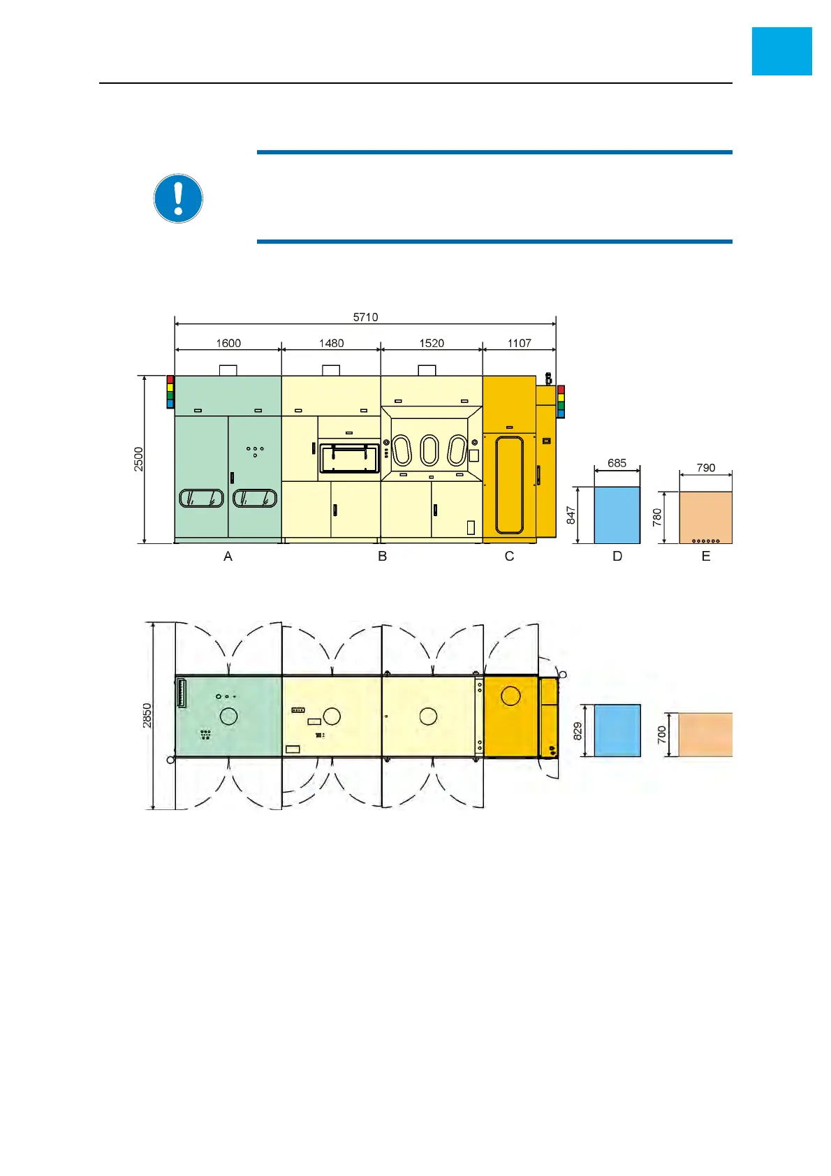 Fig. 1-3 Dimensions of the CRIUS II [mm]; Side view and top view