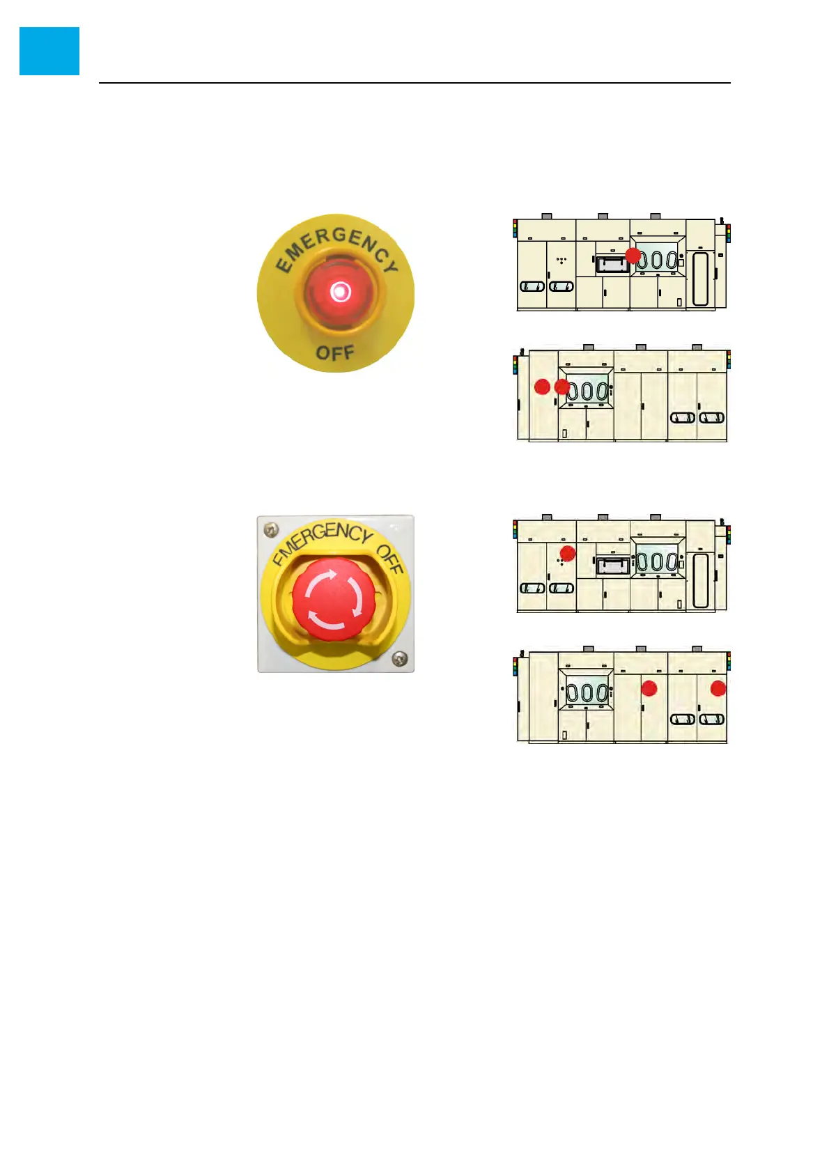 1 Check the function of the EMERGENCY-OFF buttons