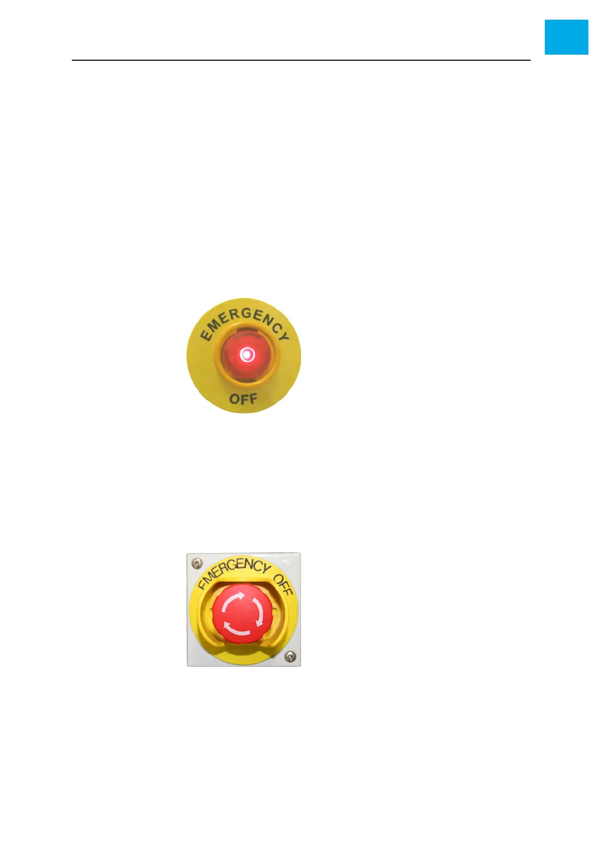 Fig. 2-5, 31 shows a typical EMERGENCY-OFF button. EMERGENCY-