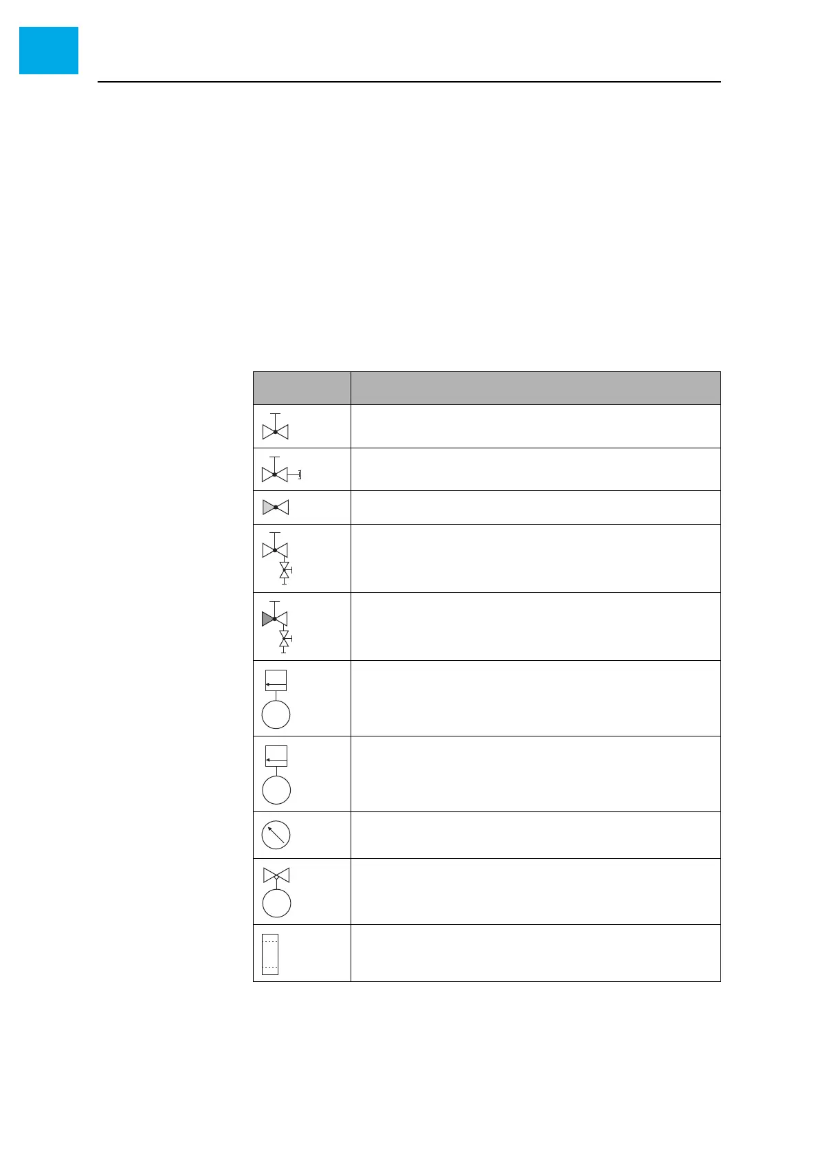 The following table lists the symbols which are used to specify the components