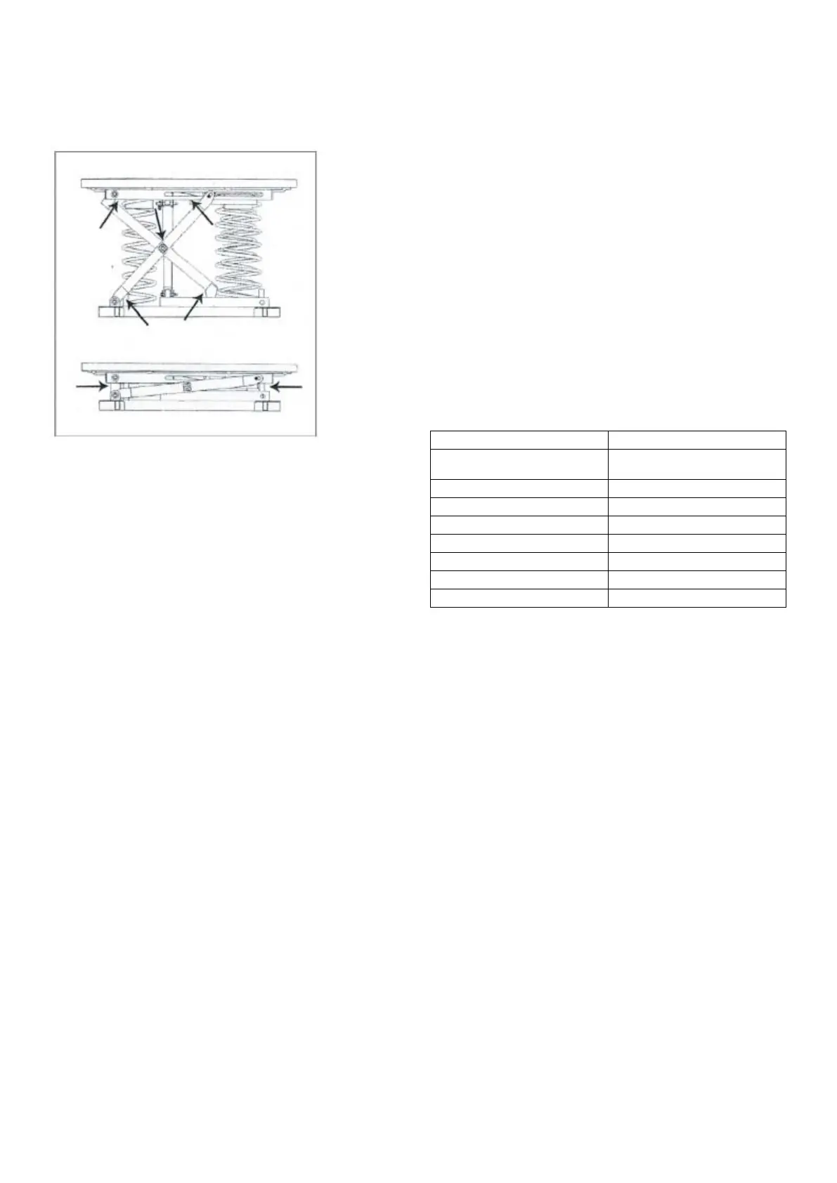 belastas upp till 2000 kg. Man byter fjädrar för att anpassa pallbordet till olika