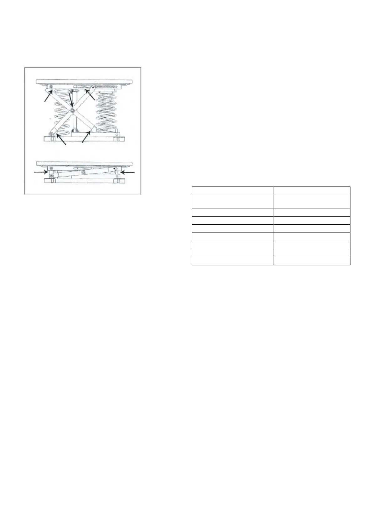 pirmās atsperes novietojums. Iekārtas rāmis ir paredzēts līdz 2000 kg smagām