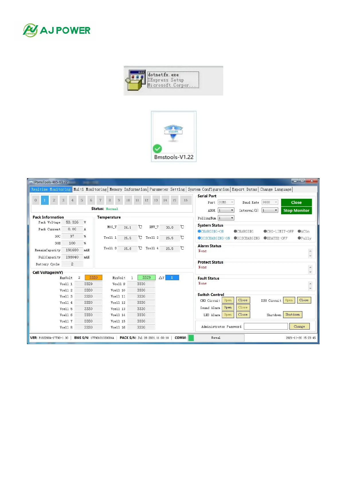 click the Bmstools v1.22. icon to run it. After running, the main interface of the software is displayed (see Figure 1-2)