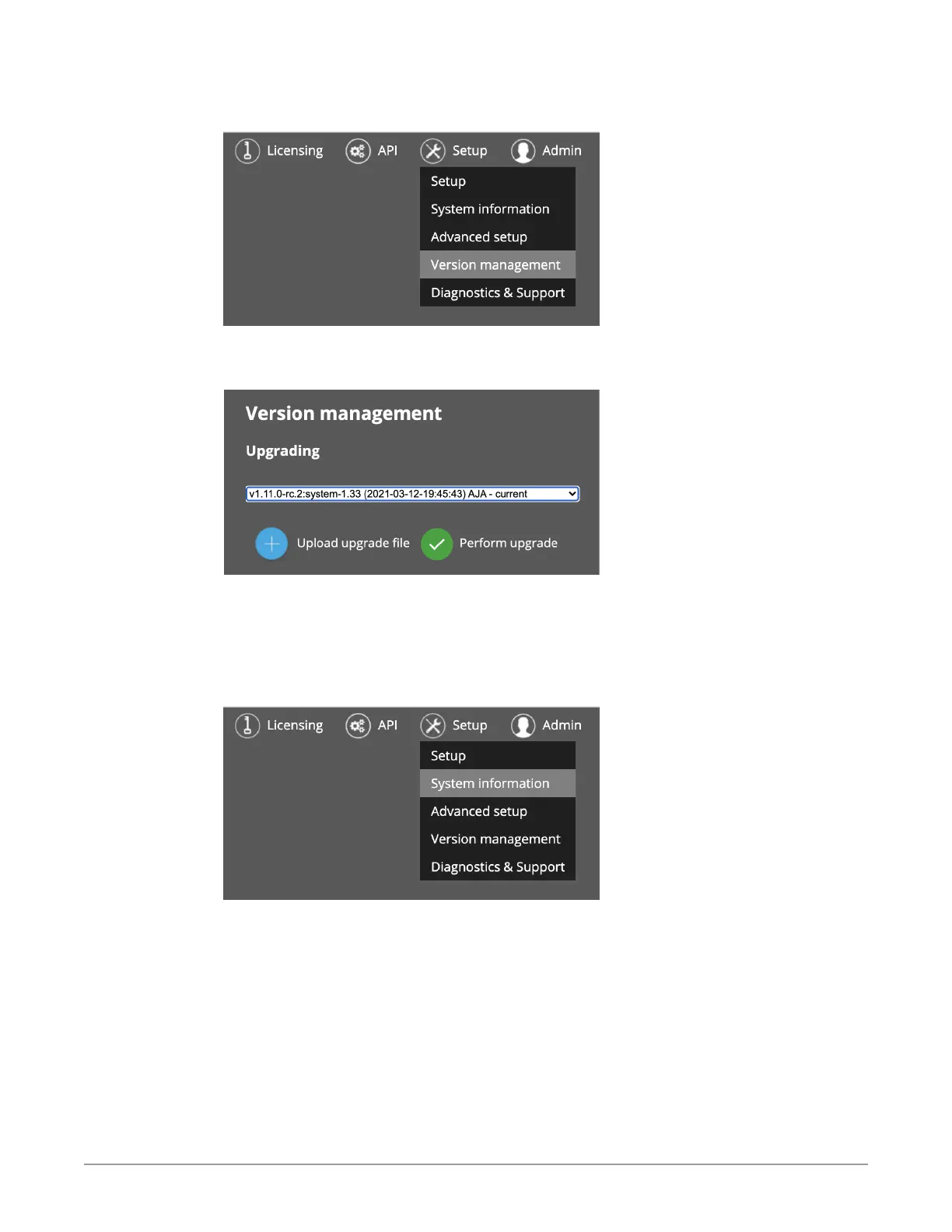 Figure 153. Version management Upgrading page