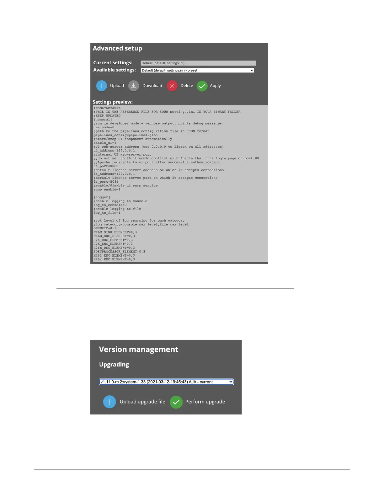 option under Setup mouse-over. You can select from uploaded upgrade files,
