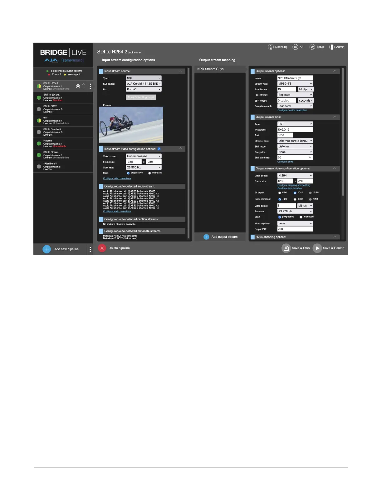 Figure 19. BRIDGE LIVE UI - Changing Stream Configuration