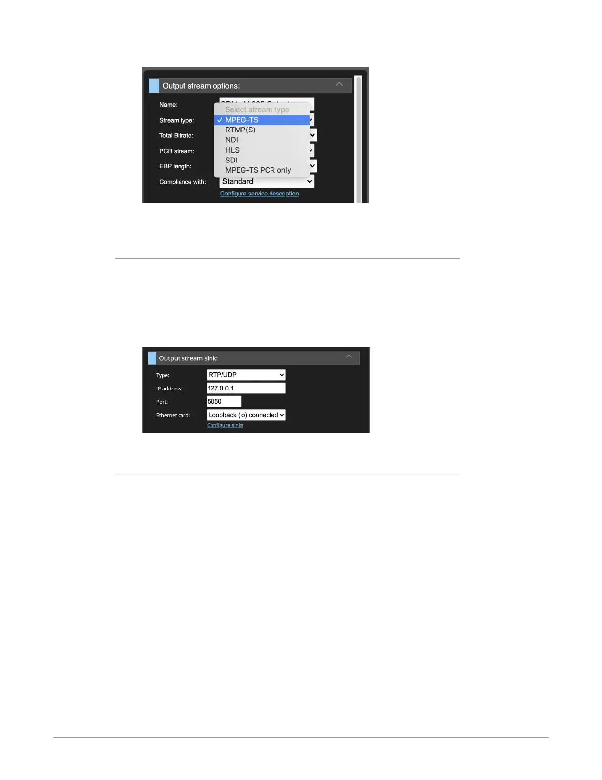 Figure 31. Output stream sink configuration