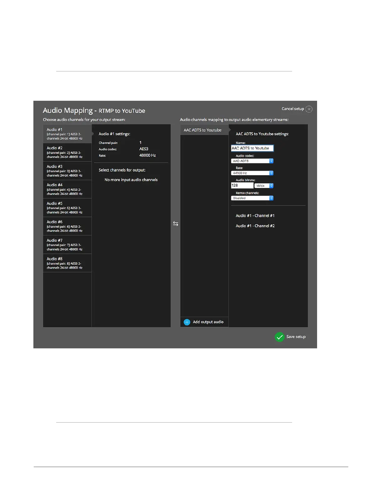 Figure 37. Audio Mapping RTMP to YouTube