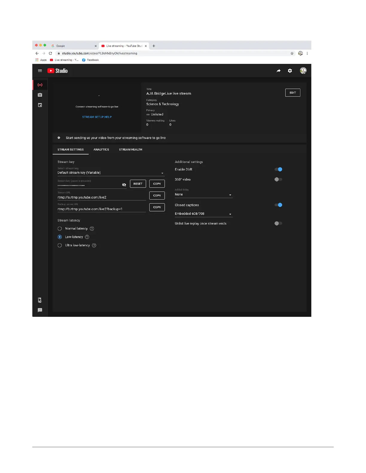 4. Go back to the YouTube Studio live streaming page.