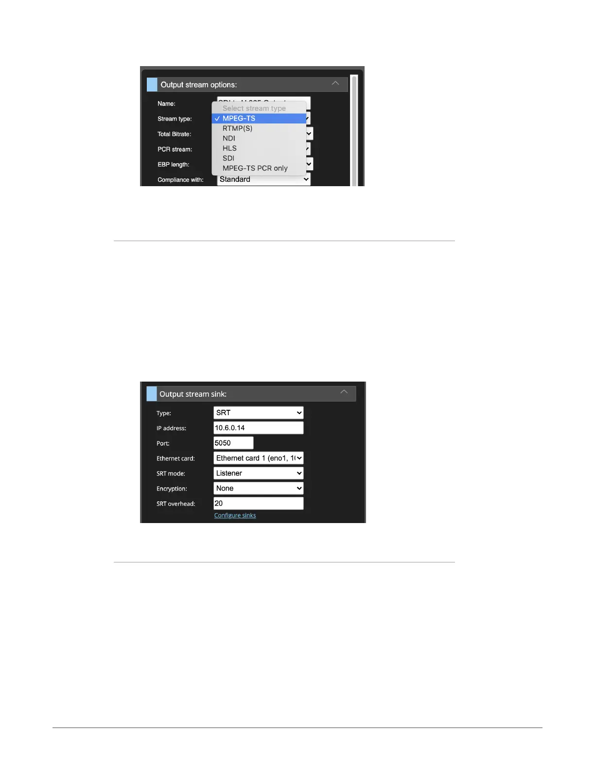 Figure 68. Output stream sink configuration