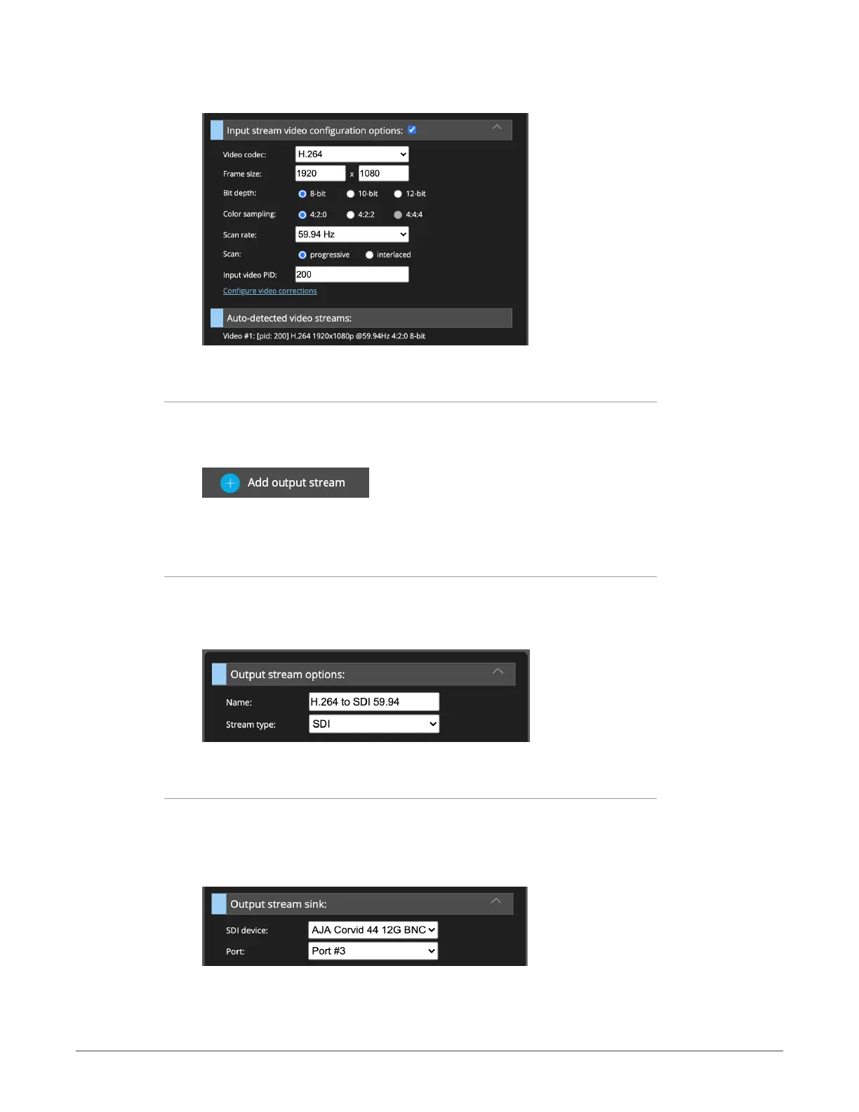 Under the heading Output stream sink, select AJA Corvid 44 12G BNC - 0 from the