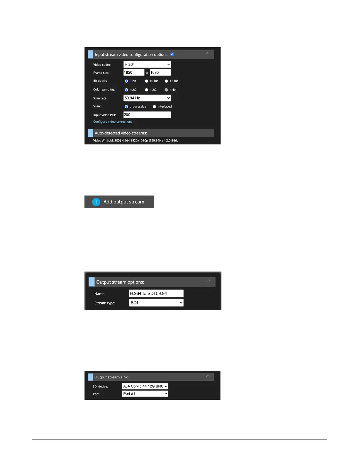 Under the heading Output stream sink, select AJA Corvid 44 12G BNC - 0 from the