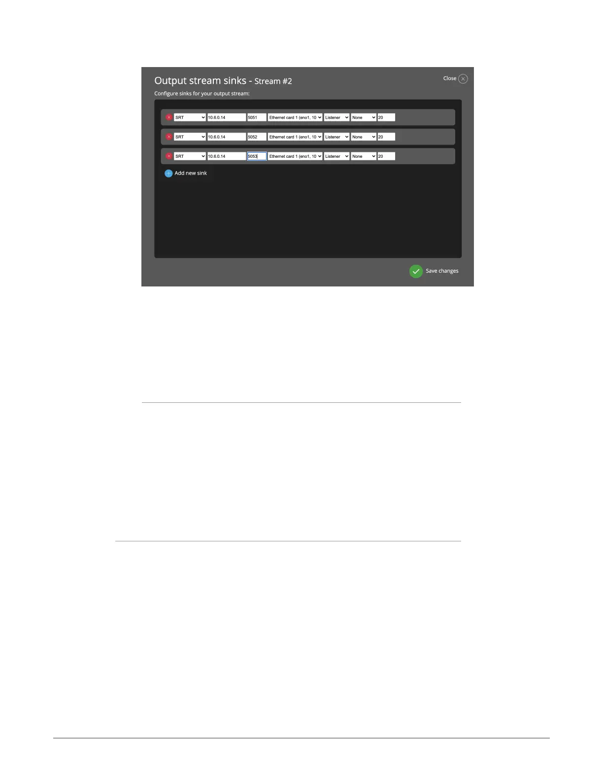 4. Repeat as needed, then click Save changes. The new stream sinks are added