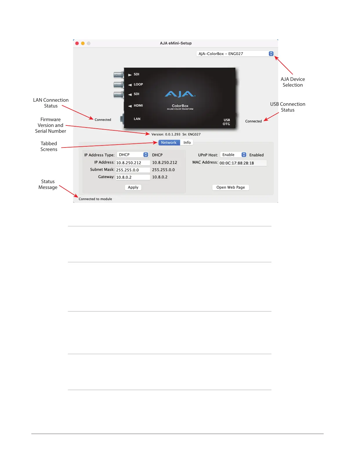 • Version - The version of firmware installed in the AJA device is displayed