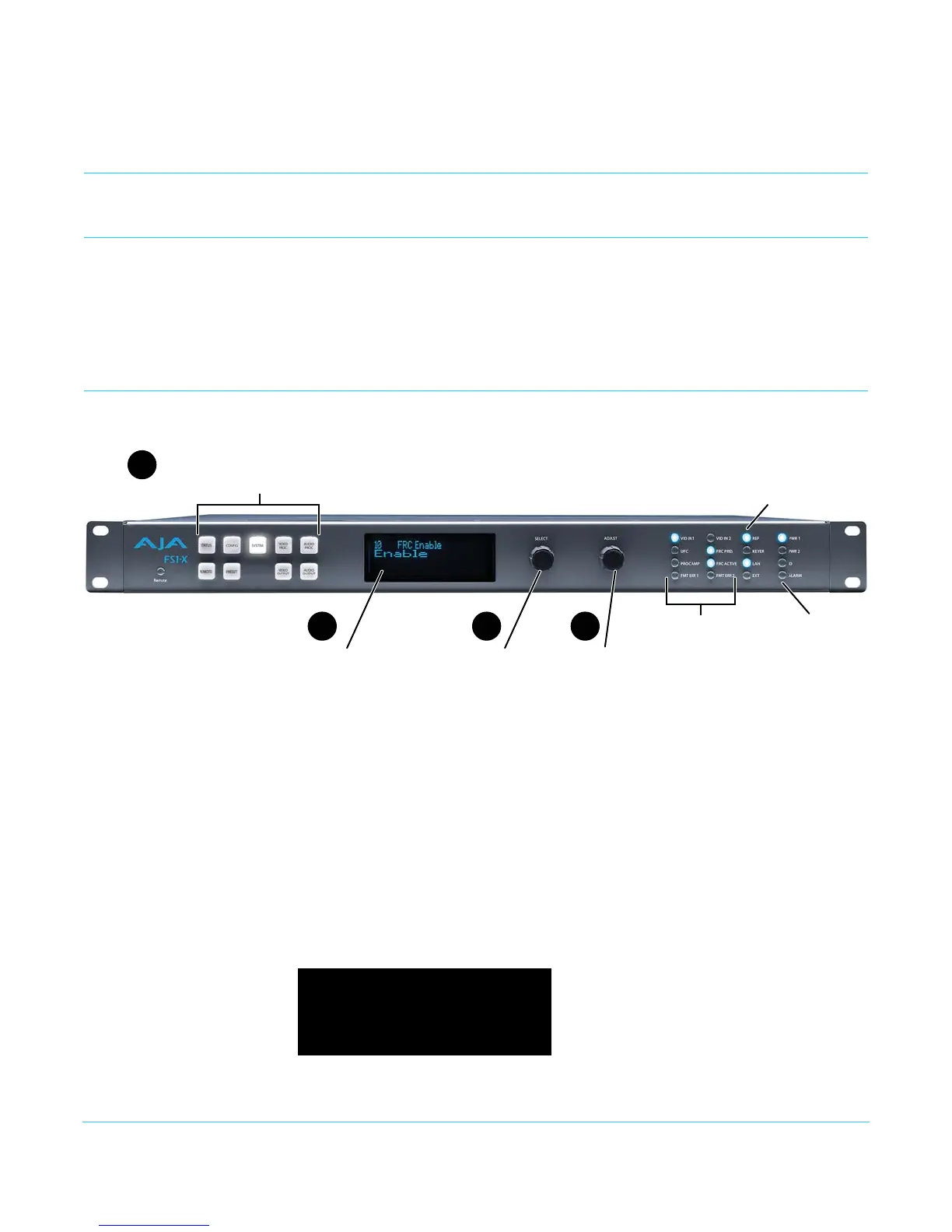 Figure 2. AJA FS1-X Front Panel Controls and Indicators