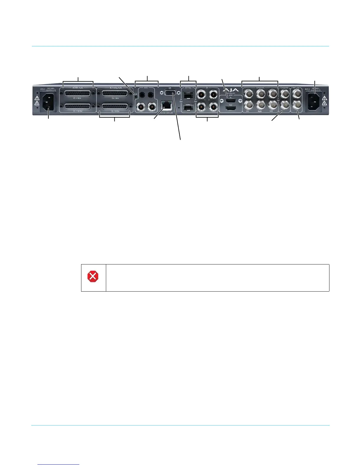 Do not connect audio signals carrying phantom power to the FS1-X analog audio