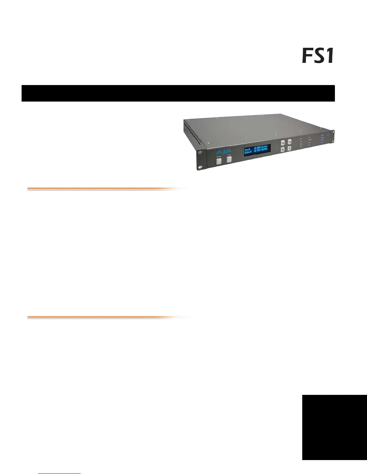 full 10-bit broadcast quality video and 24-bit audio. The FS1 supports virtually any