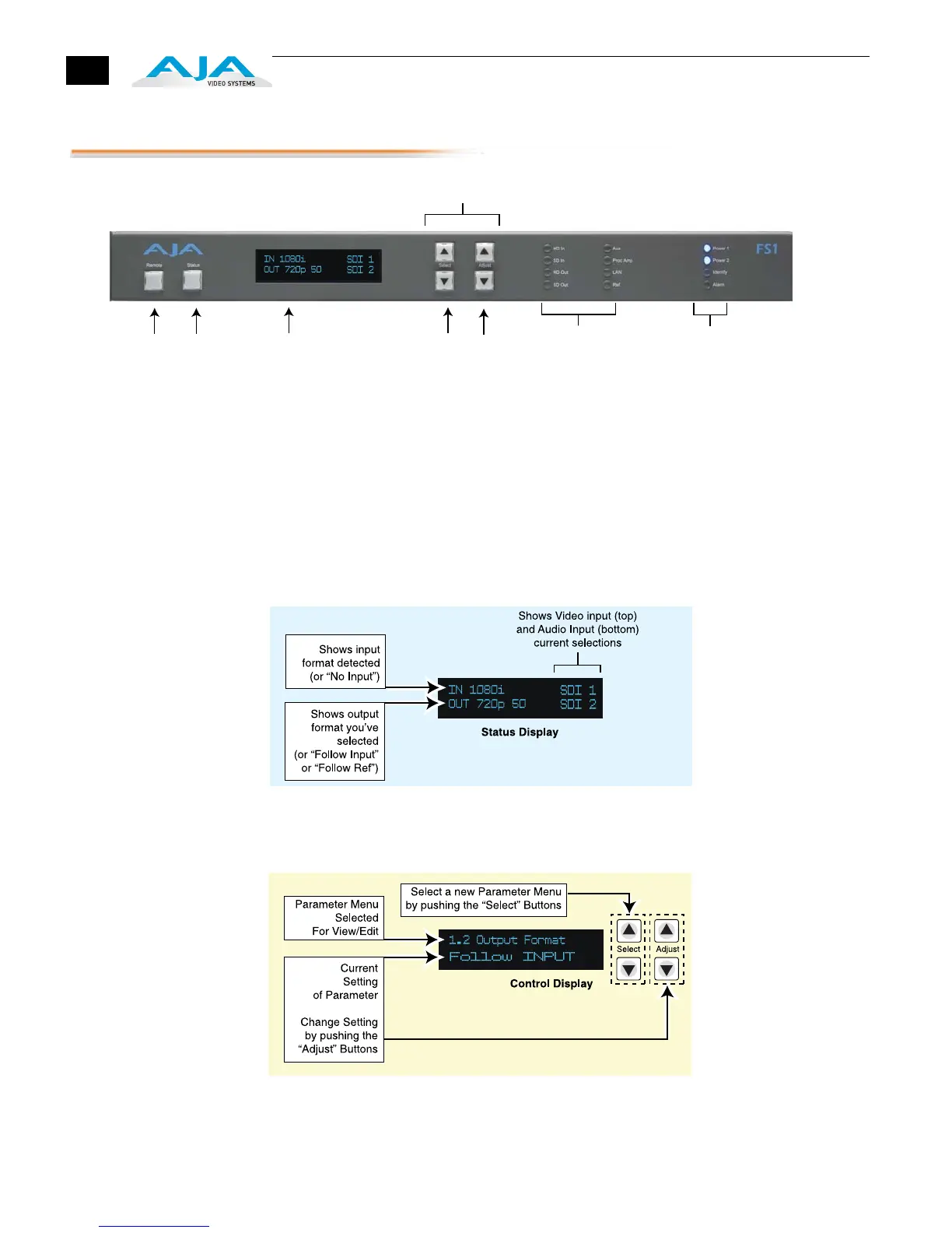 AJA FS1 Front Panel Indicators