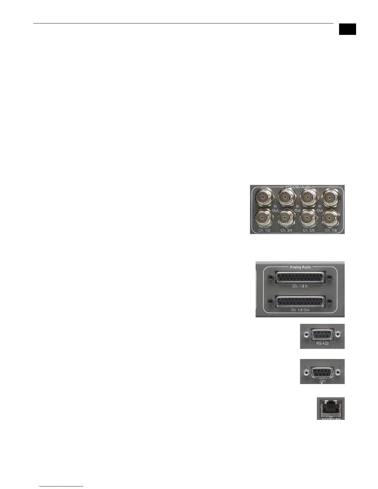• SDI In/Out—digital video with embedded audio. There are two input and two