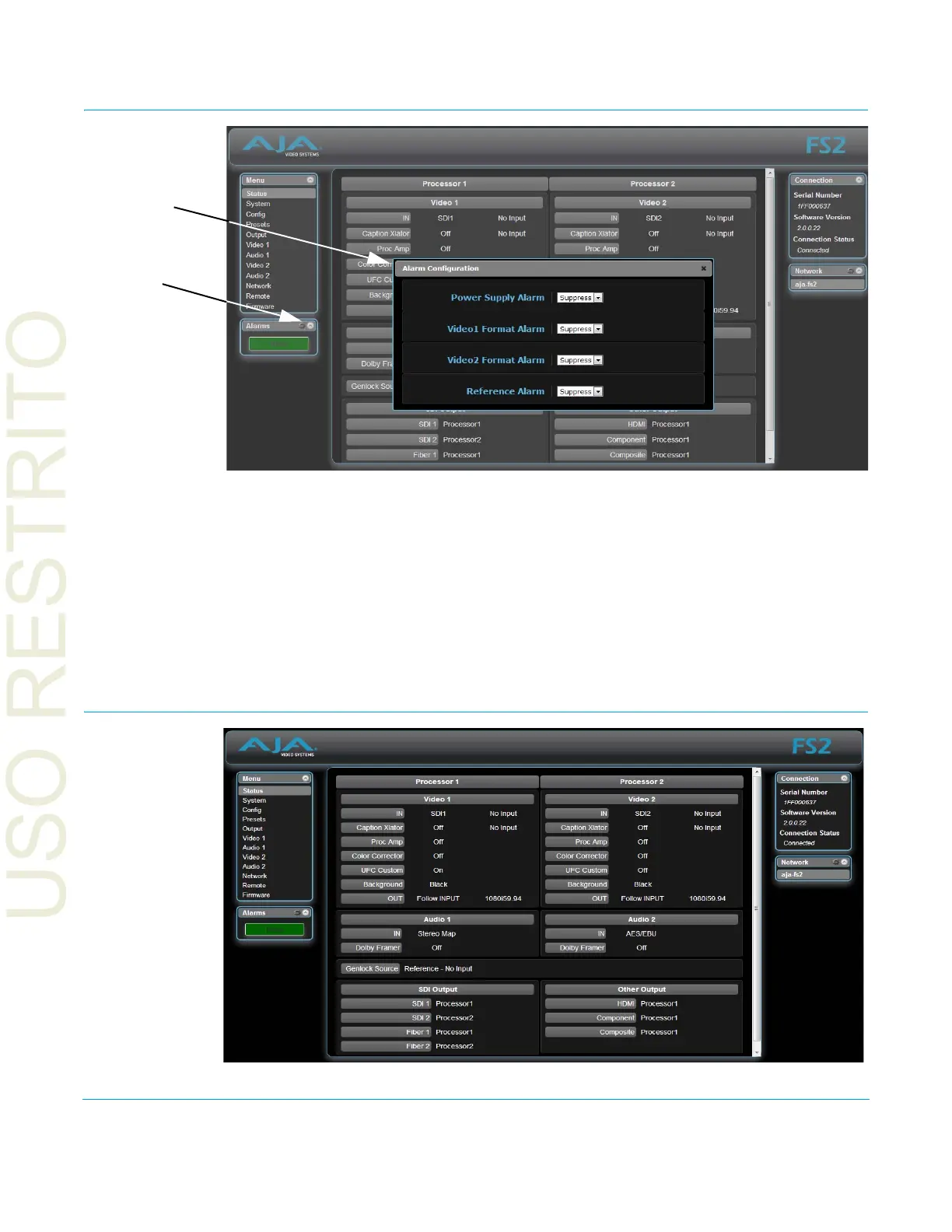 • Video 1 and Video 2 Format Alarm (see “6.1 Vid1 Format Alarm” on page 51)