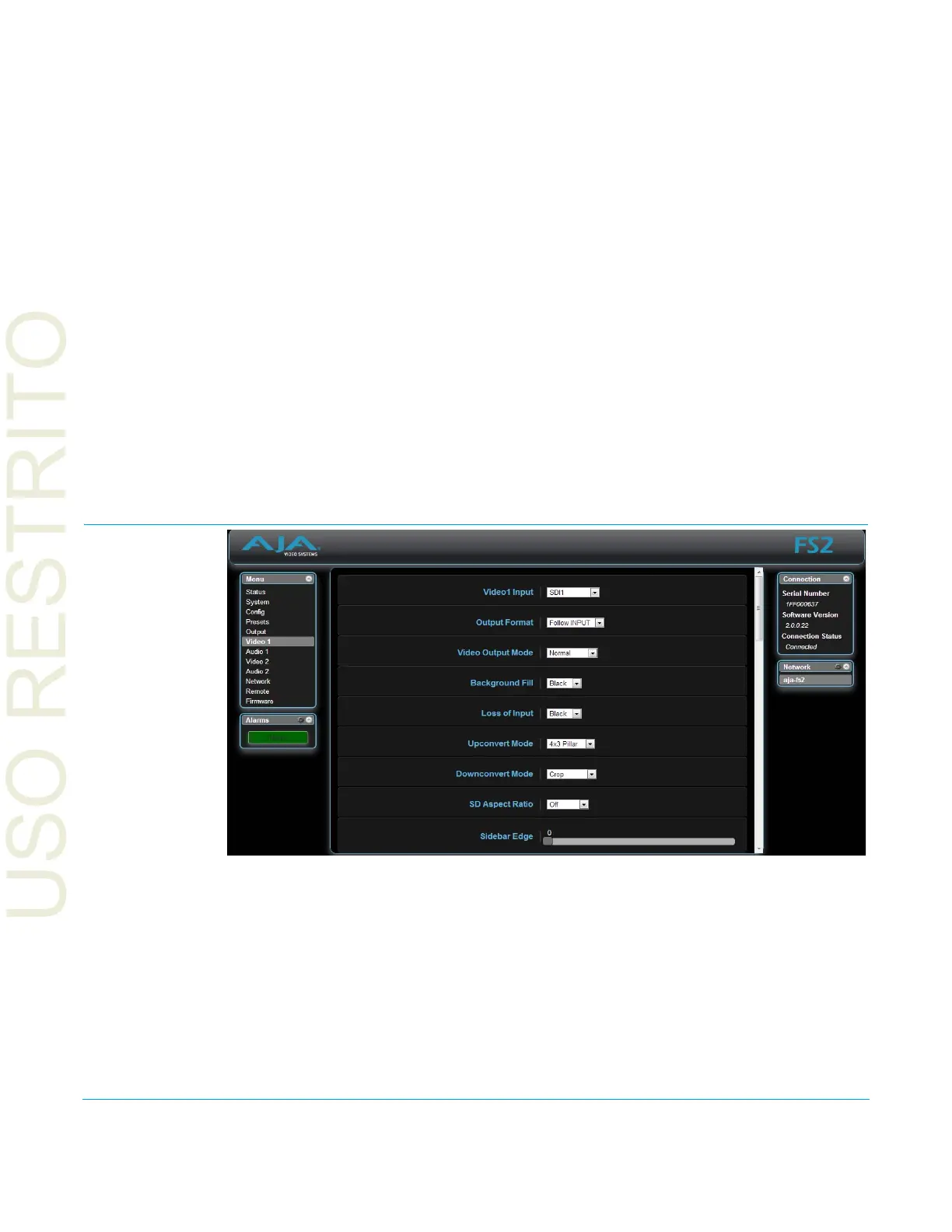 The Video 1 and 2 screens select the video and audio outputs that are routed to the FS2