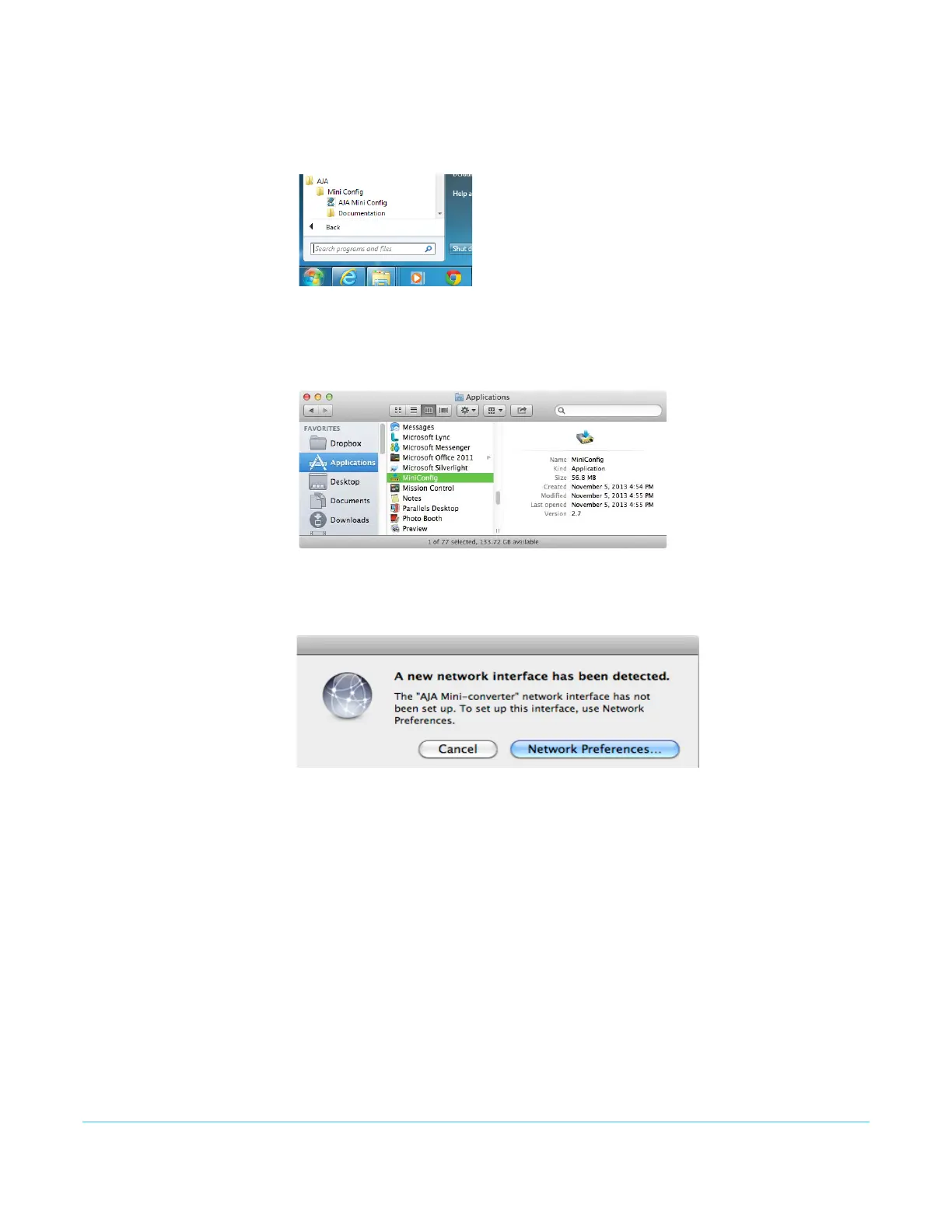 Mac Startup To run MiniConfig on a Mac, double-click the Applications folder and locate the AJA
