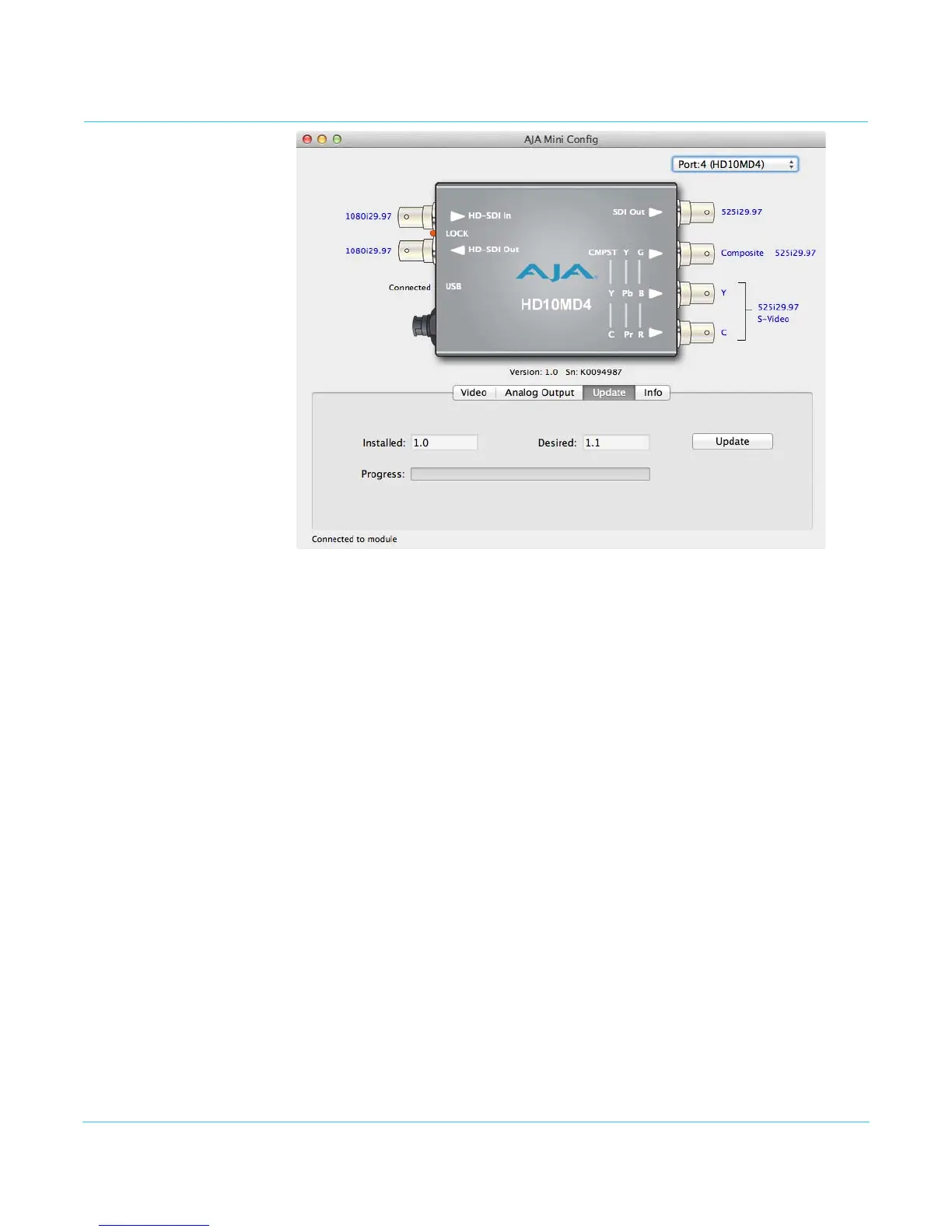 1. Check the AJA website for new Mini-Config software for your Mini-Converter. If new