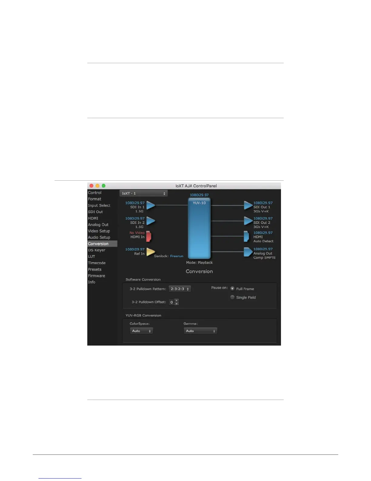 NOTE: This screen is present in the Mac version of AJA Control Panel only and not all