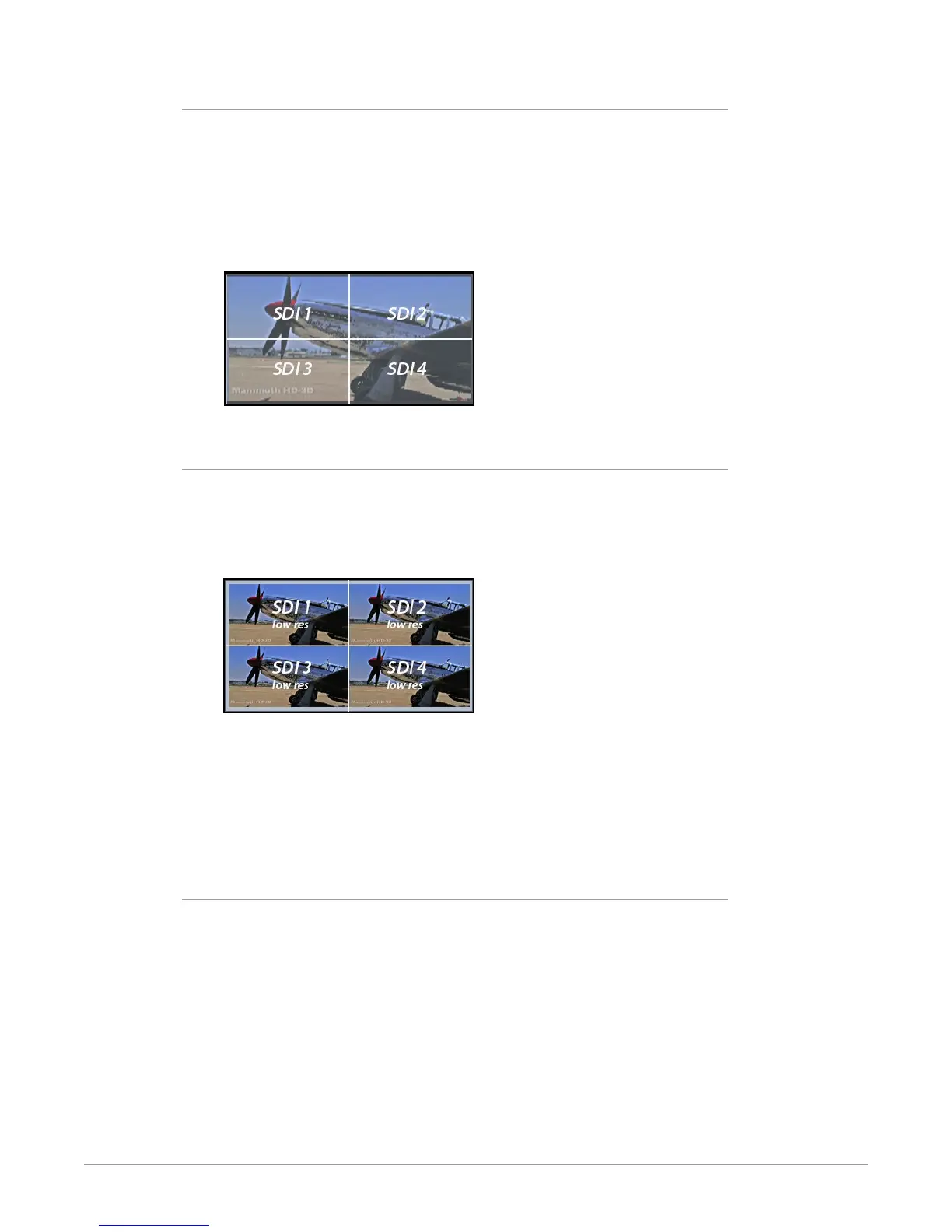 formats. Physical connections of the quadrants will be mapped to the SDI