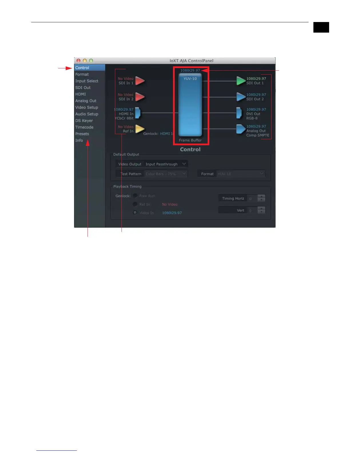 Io XT Installation and Operation Manual — AJA Control Panel Overview