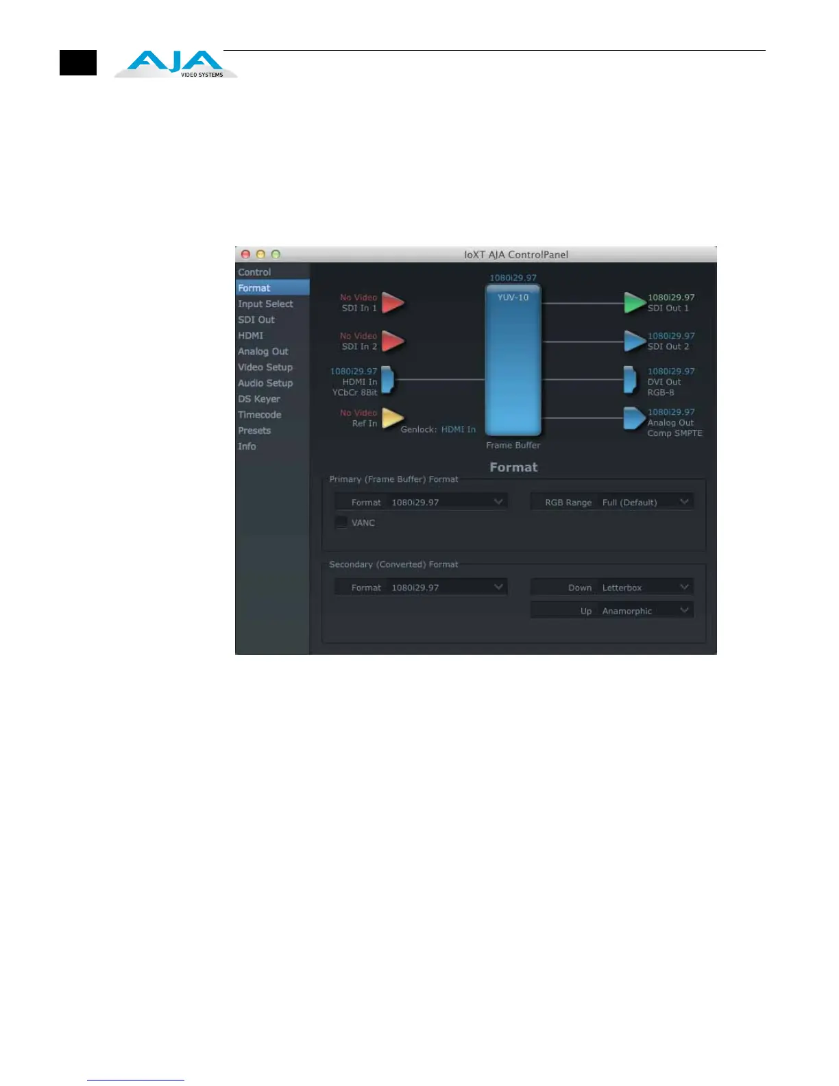 Format Tab Screen The Formats screen shows the video format currently in use by the Io XT framebuffer