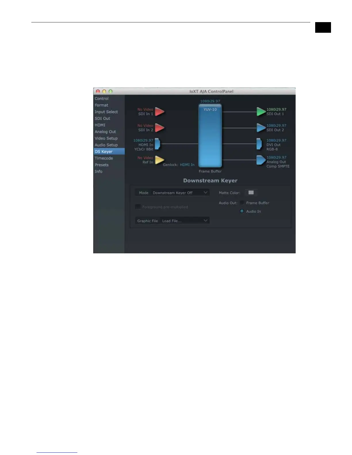 AJA Control Panel, Downstream Keyer Tab